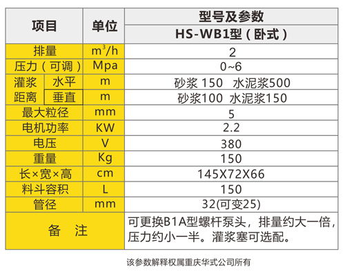 华式灌浆泵——锚杆(含自进式中空注浆锚杆)施工的首席灌浆设备。常用灌浆泵型号:HS-B1、HS-B2.